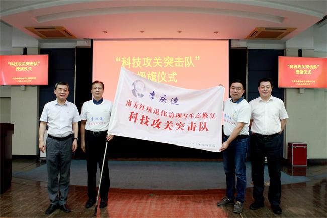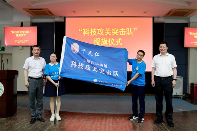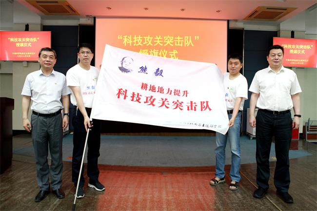 沈仁芳所长、蔡立书记为科研攻关突击队授旗